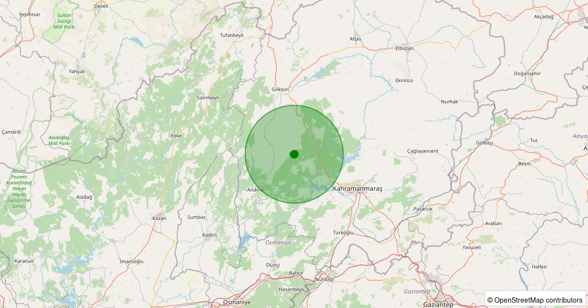 Son 7 gün içinde Onikişubat - Köşürge noktasından 100 km yarıçap içerisinde meydana gelen diğer depremler: