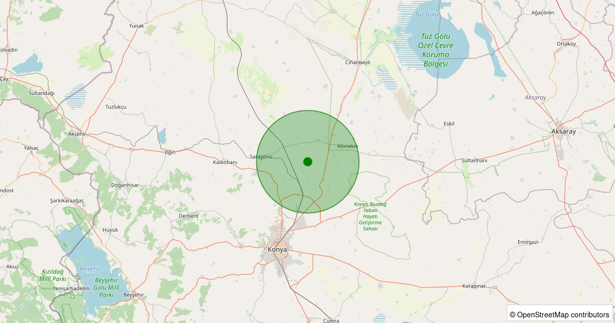 Son 7 gün içinde Selçuklu - Çaldere Köyü noktasından 100 km yarıçap içerisinde meydana gelen diğer depremler: