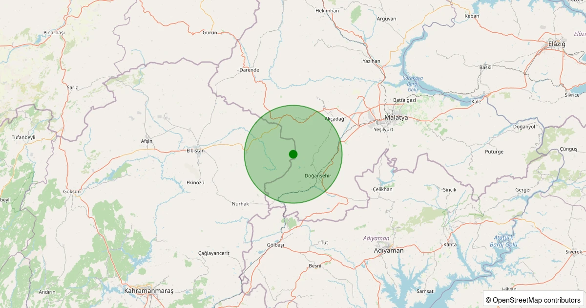 Son 7 gün içinde Elbistan - Atmalı Kaşanlı Köyü noktasından 100 km yarıçap içerisinde meydana gelen diğer depremler: