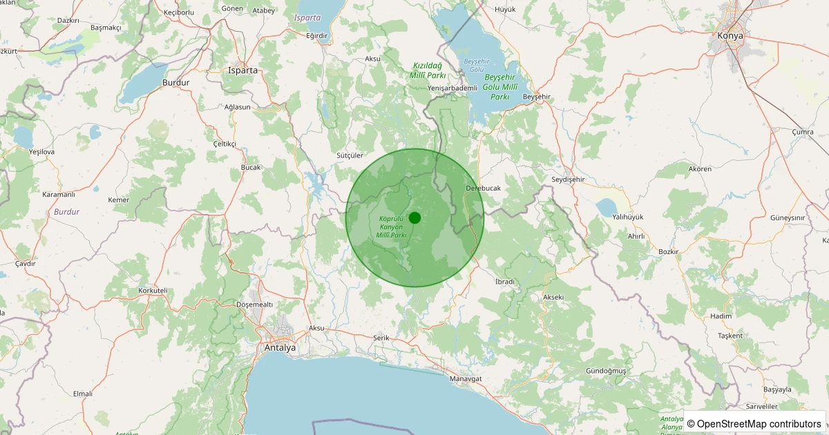 Son 7 gün içinde Manavgat - Gaziler noktasından 100 km yarıçap içerisinde meydana gelen diğer depremler: