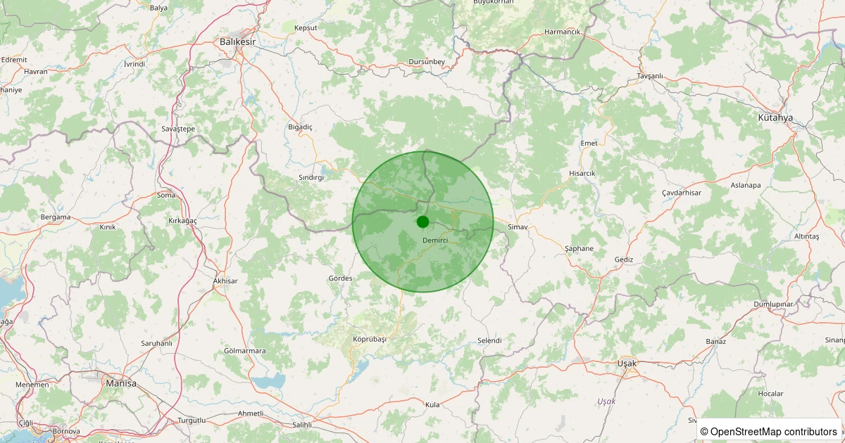 Son 7 gün içinde Demirci - Mahmutlar noktasından 100 km yarıçap içerisinde meydana gelen diğer depremler: