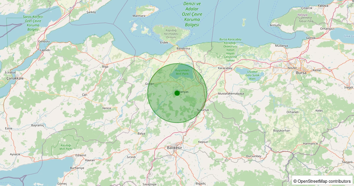 Son 7 gün içinde Manyas - Kubaş noktasından 100 km yarıçap içerisinde meydana gelen diğer depremler: