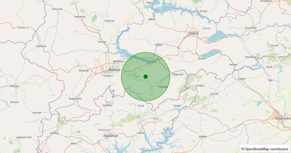 Son 7 gün içinde Battalgazi - Kamıştaş Köyü noktasından 100 km yarıçap içerisinde meydana gelen diğer depremler: