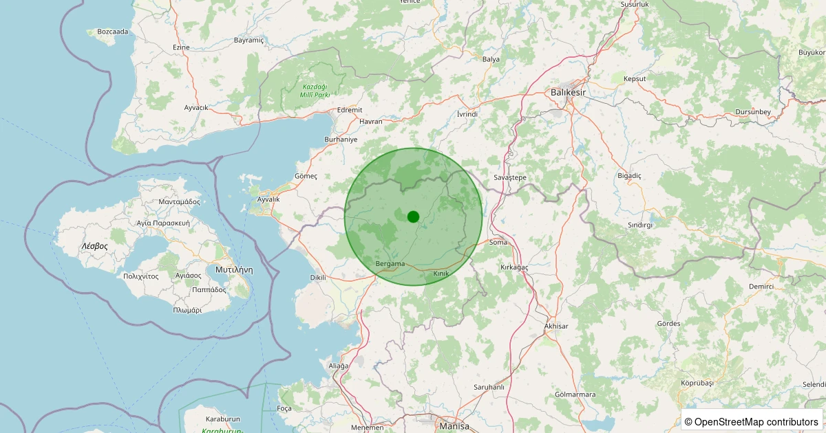 Son 7 gün içinde Bergama - Tırmanlar noktasından 100 km yarıçap içerisinde meydana gelen diğer depremler: