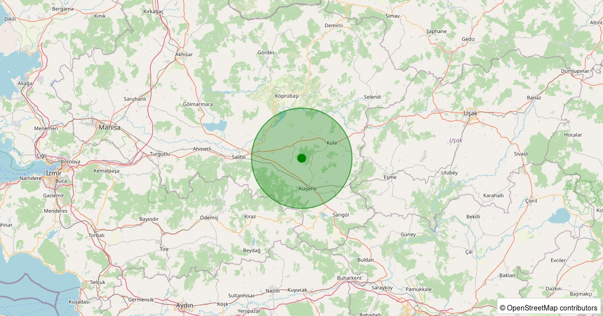 Son 7 gün içinde Kula - Hayallı noktasından 100 km yarıçap içerisinde meydana gelen diğer depremler: