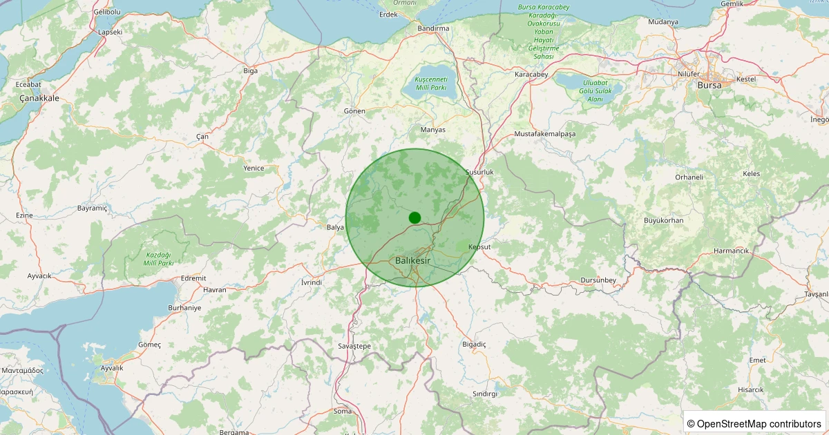 Son 7 gün içinde Karesi - Karabeyler noktasından 100 km yarıçap içerisinde meydana gelen diğer depremler: