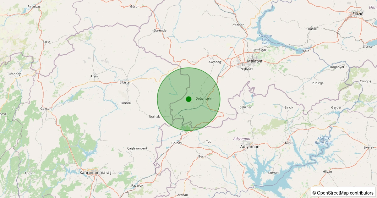 Son 7 gün içinde Doğanşehir - Fındık noktasından 100 km yarıçap içerisinde meydana gelen diğer depremler: