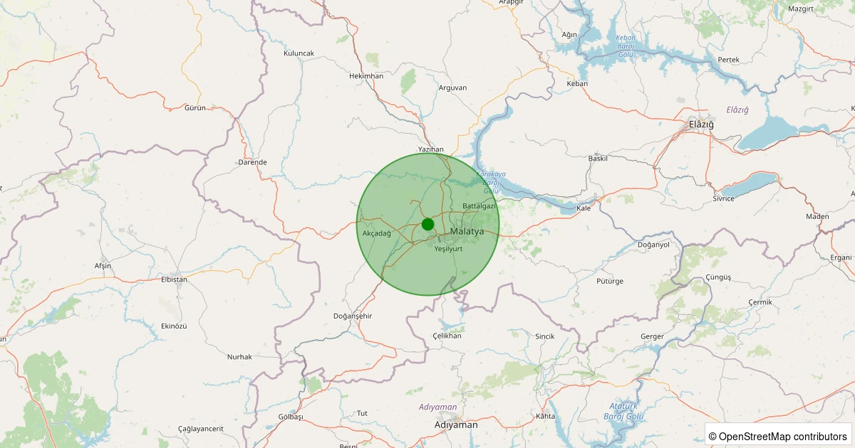 Son 7 gün içinde Yeşilyurt - Cihadiye noktasından 100 km yarıçap içerisinde meydana gelen diğer depremler: