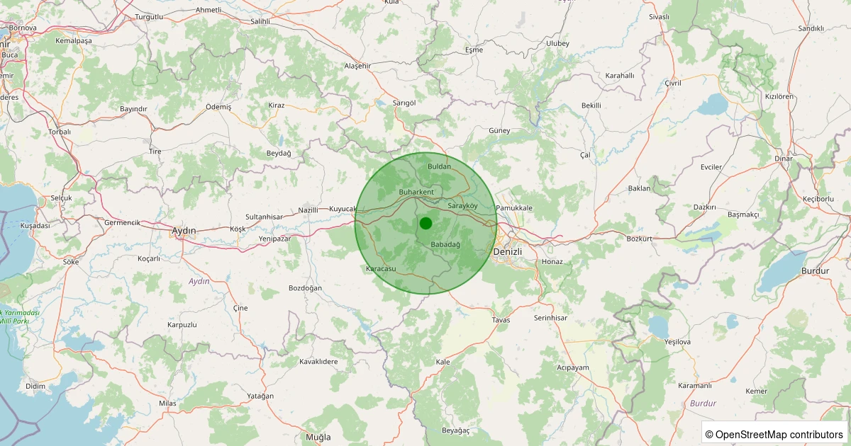 Son 7 gün içinde Sarayköy - Yeşilyurt Köyü noktasından 100 km yarıçap içerisinde meydana gelen diğer depremler:
