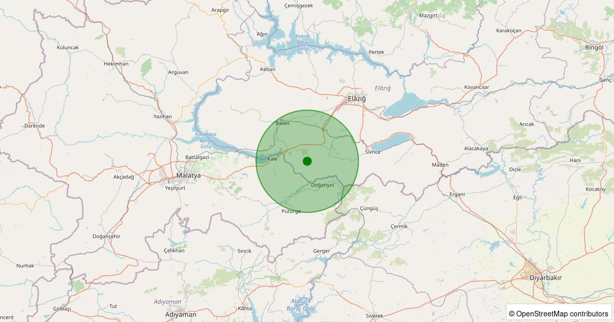Son 7 gün içinde Baskil - Sarıtaş Köyü noktasından 100 km yarıçap içerisinde meydana gelen diğer depremler:
