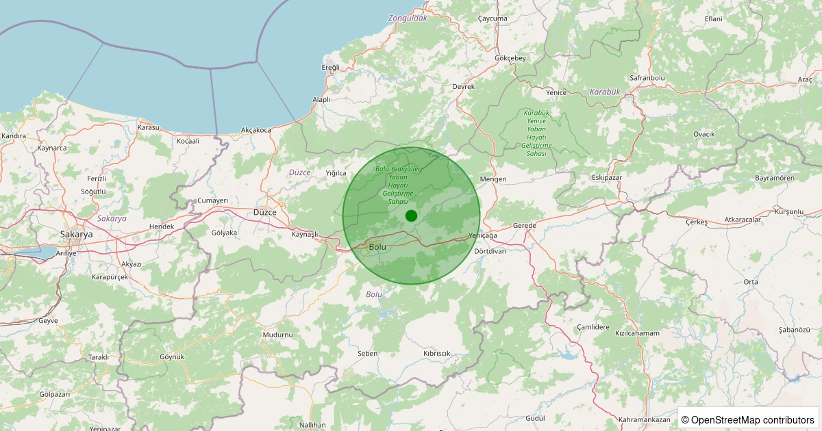 Son bir hafta içerisinde Bolu şehri Merkez - Değirmenderesi Köyü noktasından 100 km yarıçap içerisinde toplamda 46 deprem kaydedilmiştir. Bu depremlerden en büyüğü 2.3 büyüklüğünde ve en sığ odaklısı 0.00 kilometre derinlikte gerçekleşmiştir.