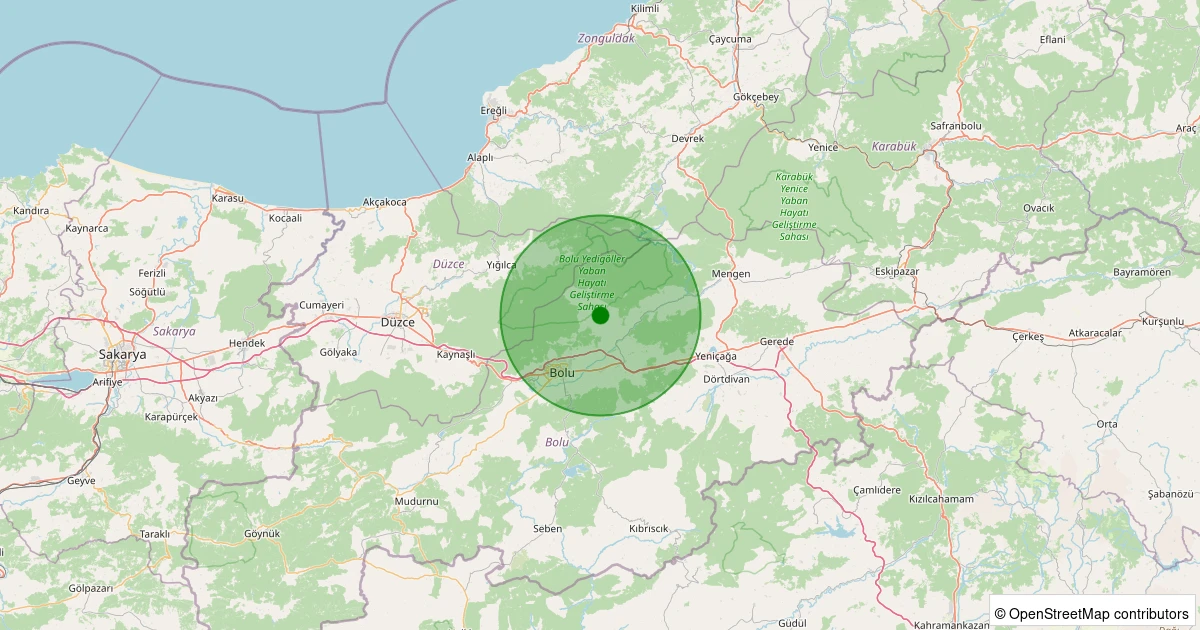 Son bir hafta içerisinde Bolu şehri Merkez noktasından 100 km yarıçap içerisinde toplamda 44 deprem kaydedilmiştir. Bu depremlerden en büyüğü 2.3 büyüklüğünde ve en sığ odaklısı 0.00 kilometre derinlikte gerçekleşmiştir.
