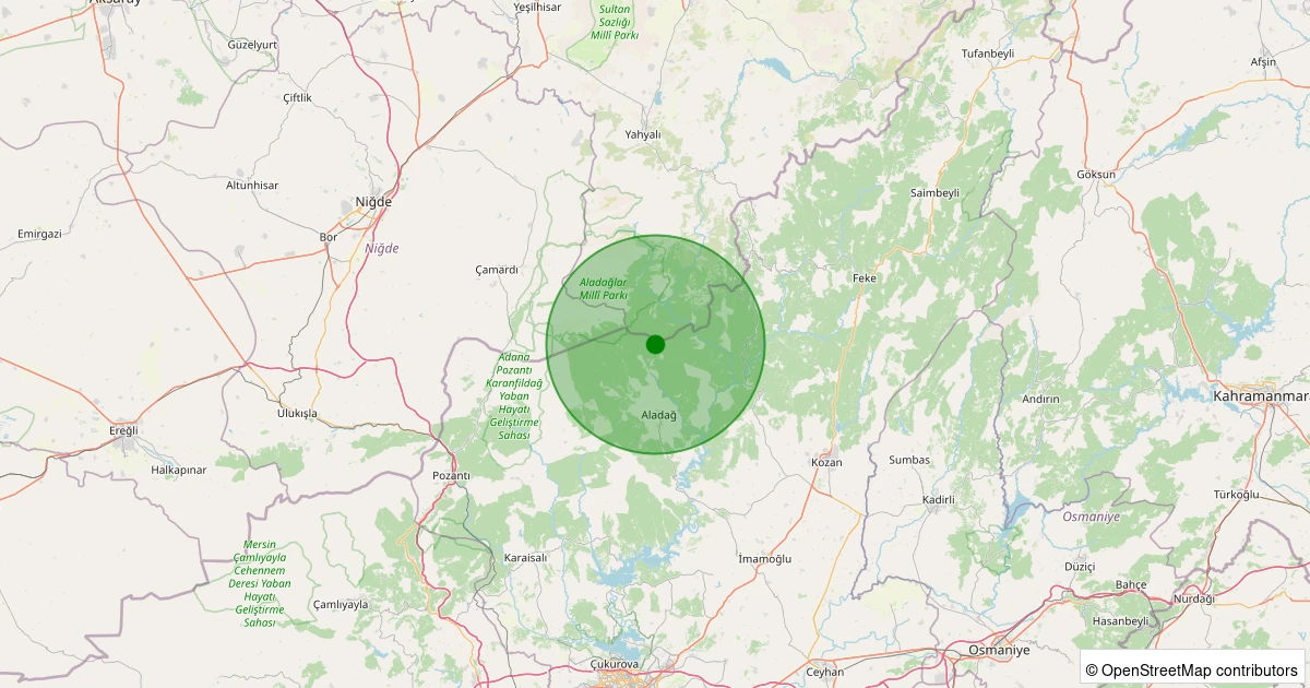 Son 7 gün içinde Aladağ noktasından 100 km yarıçap içerisinde meydana gelen diğer depremler: