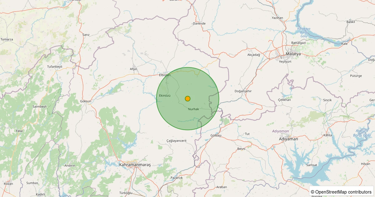 Son 7 gün içinde Nurhak - Ağcaşar Köyü noktasından 100 km yarıçap içerisinde meydana gelen diğer depremler: