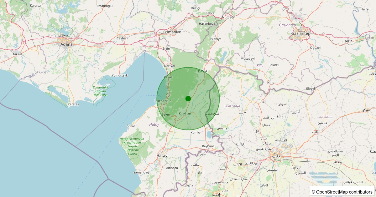 Son 7 gün içinde Kırıkhan - Saylak Köyü noktasından 100 km yarıçap içerisinde meydana gelen diğer depremler: