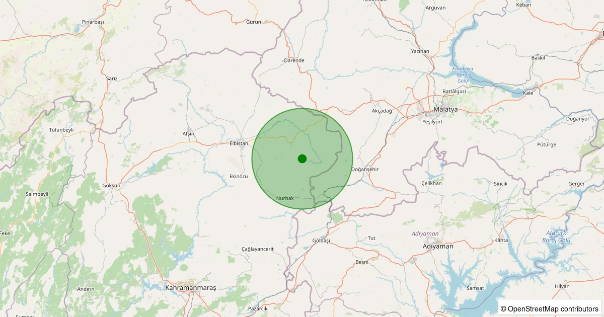 Son 7 gün içinde Elbistan - Kantarma Köyü noktasından 100 km yarıçap içerisinde meydana gelen diğer depremler: