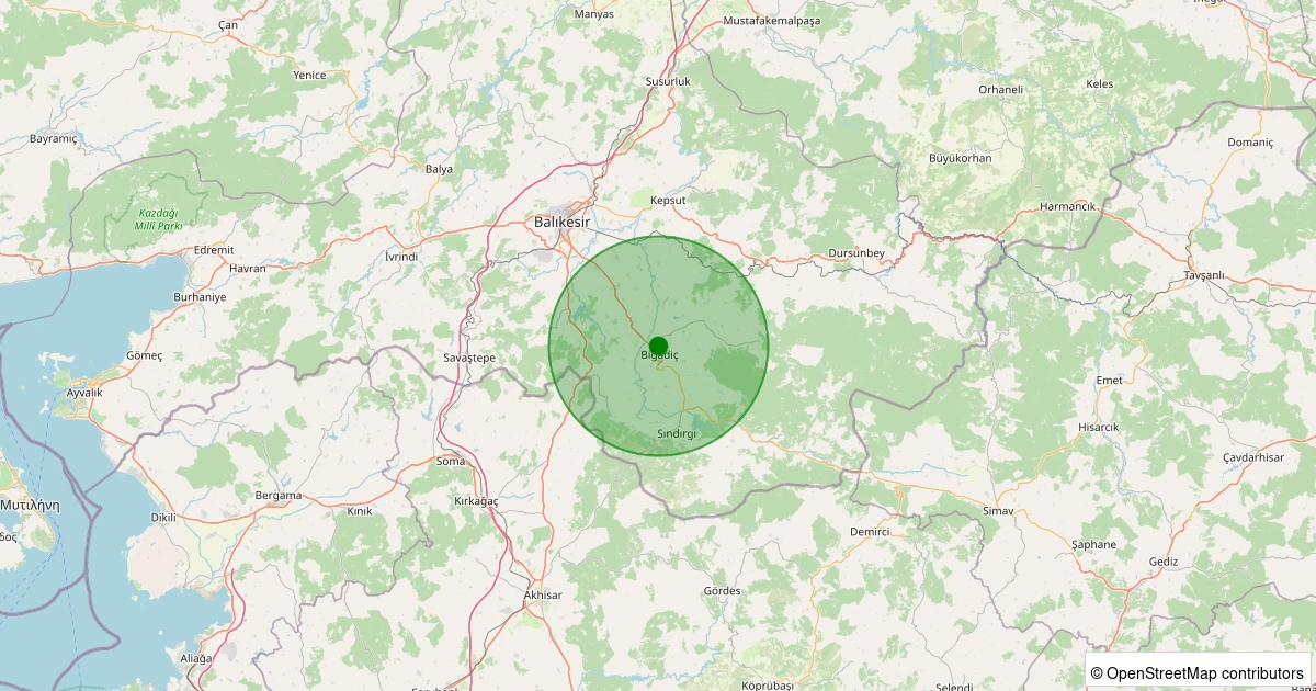 Son bir hafta içerisinde Balıkesir şehri Bigadiç noktasından 100 km yarıçap içerisinde toplamda 827 deprem kaydedilmiştir. Bu depremlerden en büyüğü 3.6 büyüklüğünde ve en sığ odaklısı 0.00 kilometre derinlikte gerçekleşmiştir.