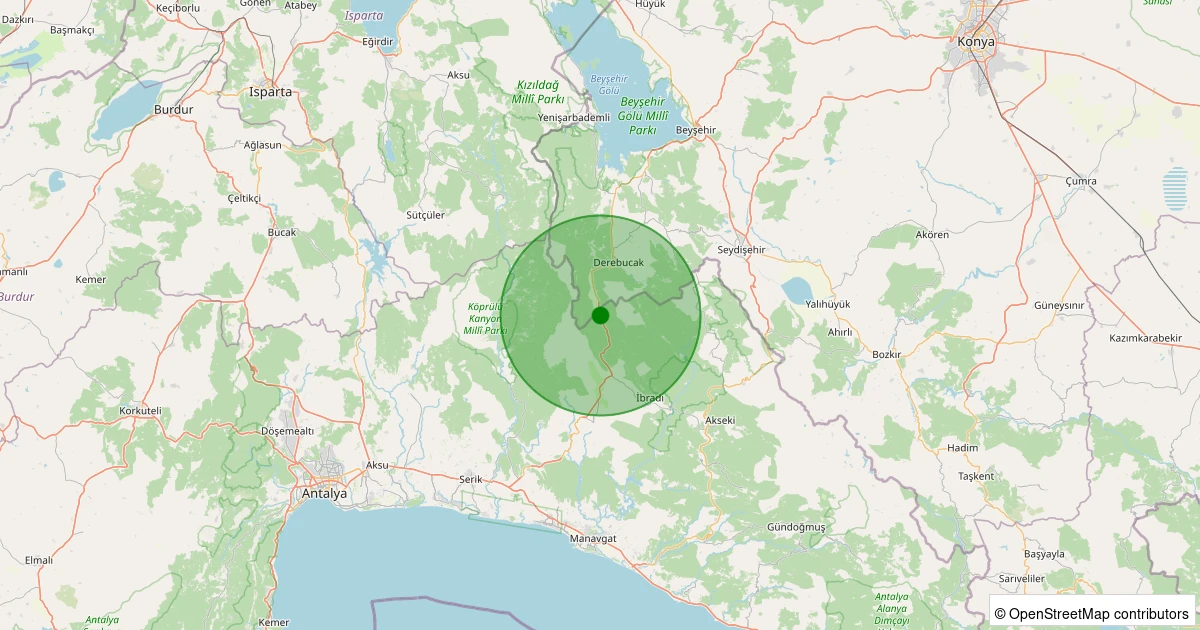 Son 7 gün içinde İbradı - Yukarımahalle noktasından 100 km yarıçap içerisinde meydana gelen diğer depremler: