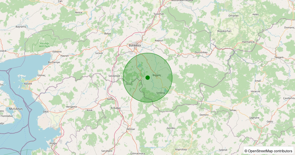 Son 7 gün içinde Bigadiç - Çekirdekli noktasından 100 km yarıçap içerisinde meydana gelen diğer depremler: