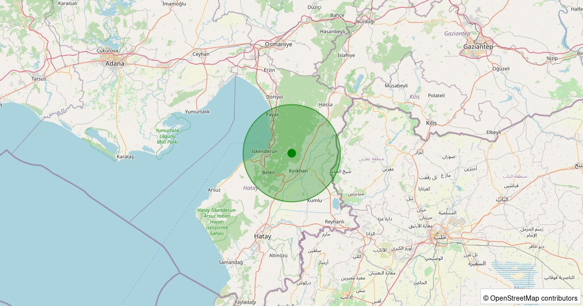 Son 7 gün içinde Kırıkhan noktasından 100 km yarıçap içerisinde meydana gelen diğer depremler: