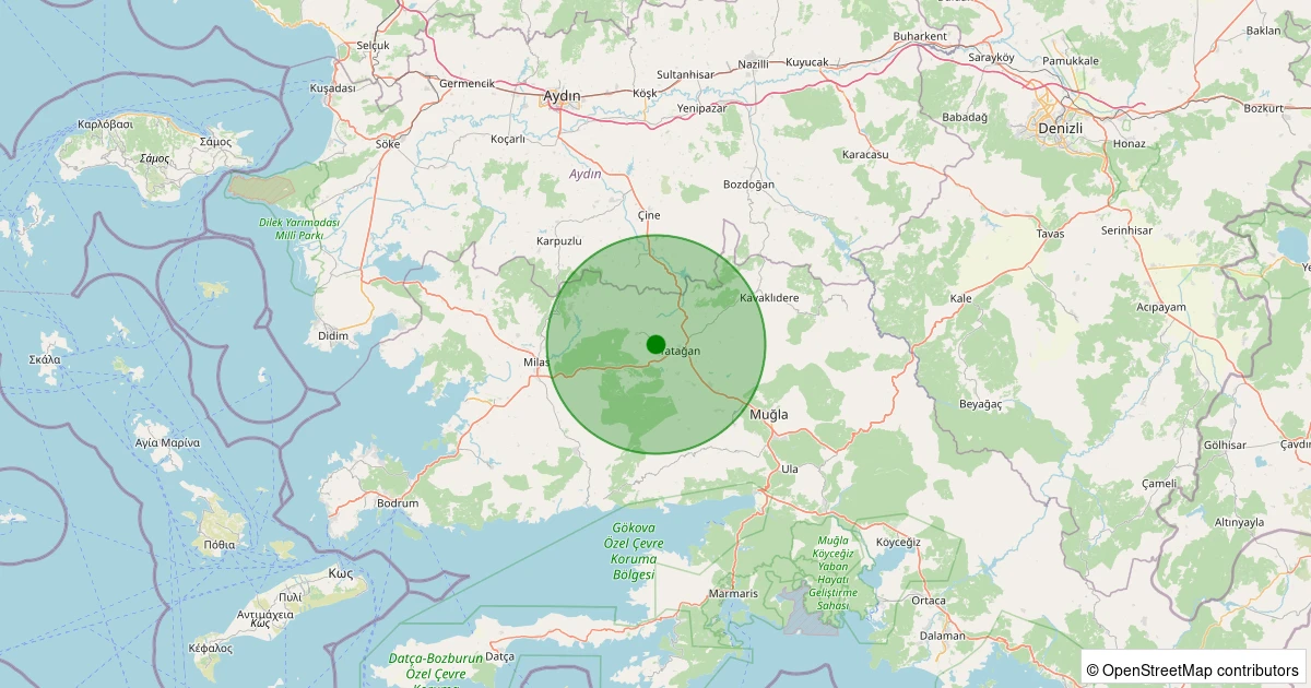 Son 7 gün içinde Yatağan - Nebiköy noktasından 100 km yarıçap içerisinde meydana gelen diğer depremler: