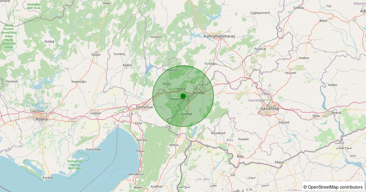 Son 7 gün içinde Bahçe - Kızlaç Köyü noktasından 100 km yarıçap içerisinde meydana gelen diğer depremler: