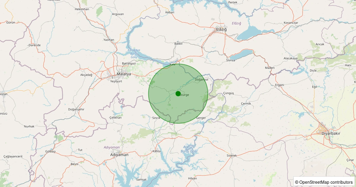 Son 7 gün içinde Pütürge - Taşmış Köyü noktasından 100 km yarıçap içerisinde meydana gelen diğer depremler: