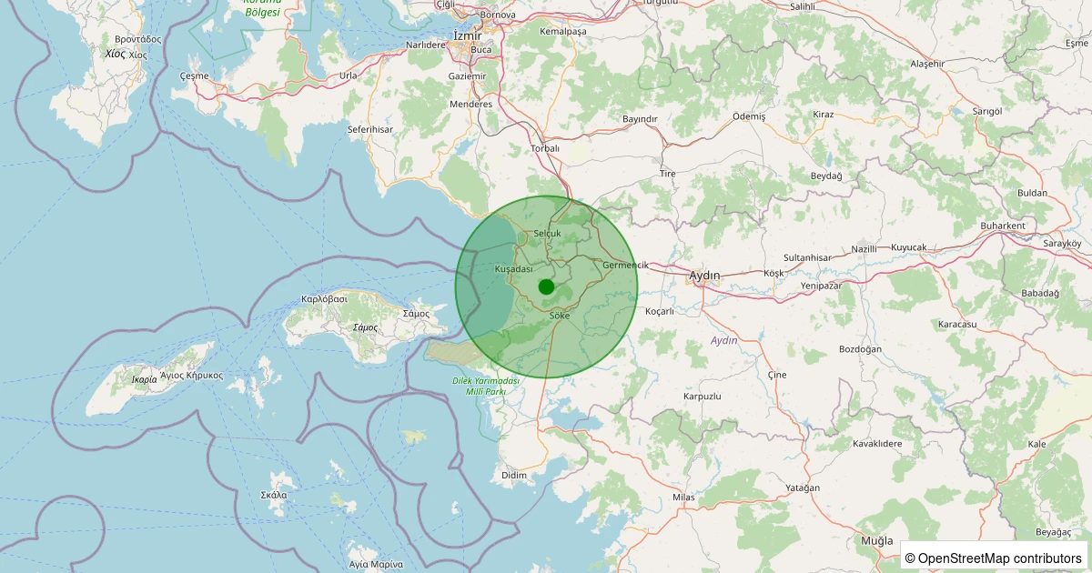 Son 7 gün içinde Kuşadası - Kirazlı Köyü noktasından 100 km yarıçap içerisinde meydana gelen diğer depremler: