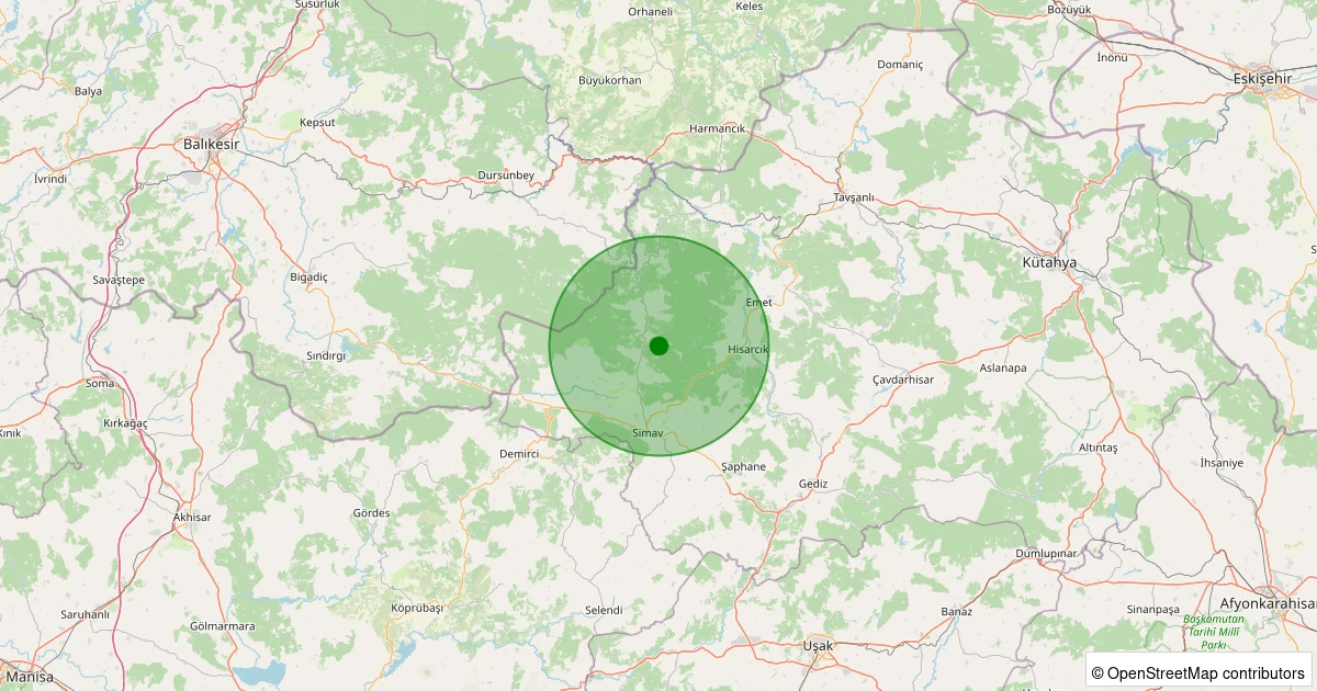 Son 7 gün içinde Simav - Yeşildere Köyü noktasından 100 km yarıçap içerisinde meydana gelen diğer depremler: