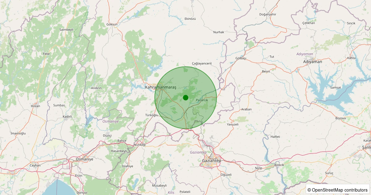Son 7 gün içinde Dulkadiroğlu - Kartal noktasından 100 km yarıçap içerisinde meydana gelen diğer depremler: