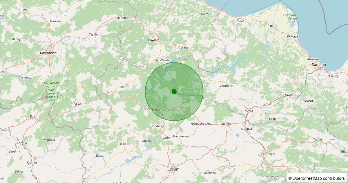 Son 7 gün içinde Osmancık - Karalar Güney Köyü noktasından 100 km yarıçap içerisinde meydana gelen diğer depremler: