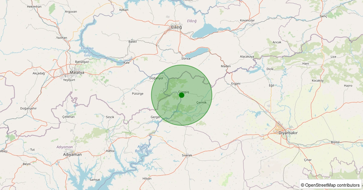 Son 7 gün içinde Çüngüş - Geçit Köyü noktasından 100 km yarıçap içerisinde meydana gelen diğer depremler: