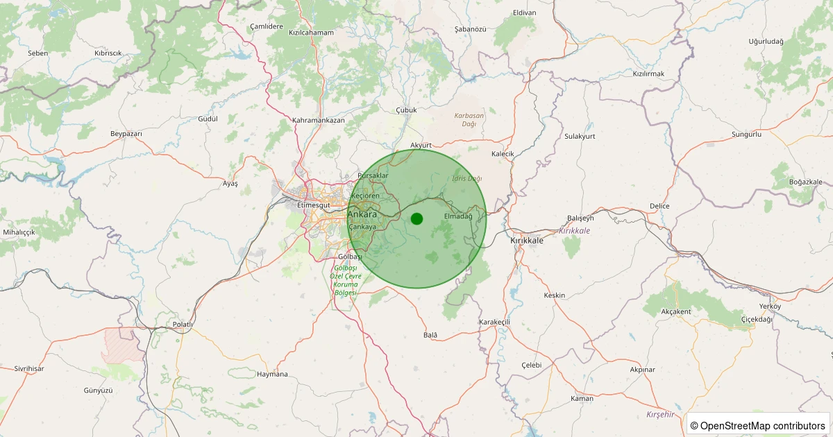 Son 7 gün içinde Mamak - Ortaköy noktasından 100 km yarıçap içerisinde meydana gelen diğer depremler: