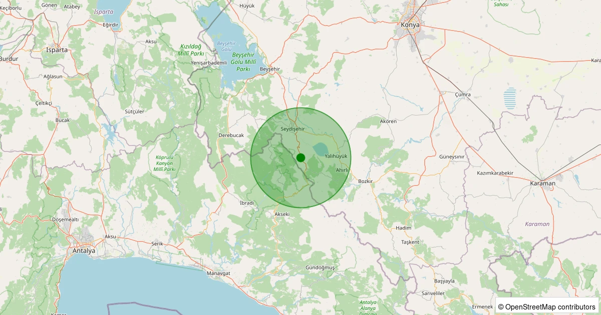 Son bir hafta içerisinde Konya şehri Seydişehir - Madenli noktasından 100 km yarıçap içerisinde toplamda 12 deprem kaydedilmiştir. Bu depremlerden en büyüğü 4.1 büyüklüğünde ve en sığ odaklısı 5.00 kilometre derinlikte gerçekleşmiştir.