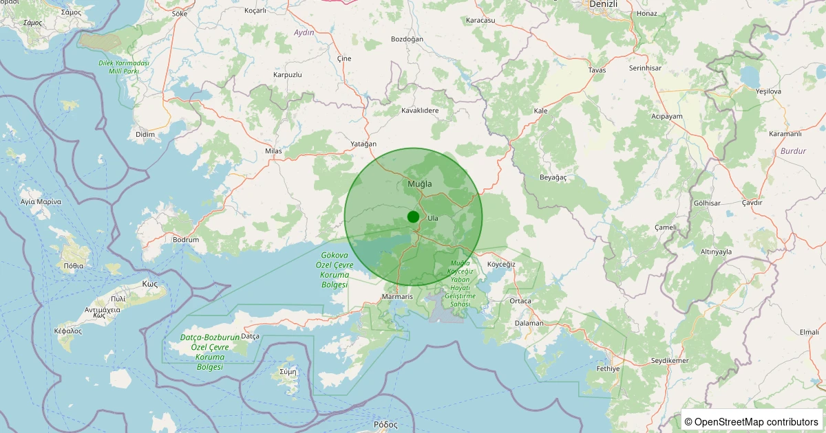 Son 7 gün içinde Ula - Kızılağaç noktasından 100 km yarıçap içerisinde meydana gelen diğer depremler: