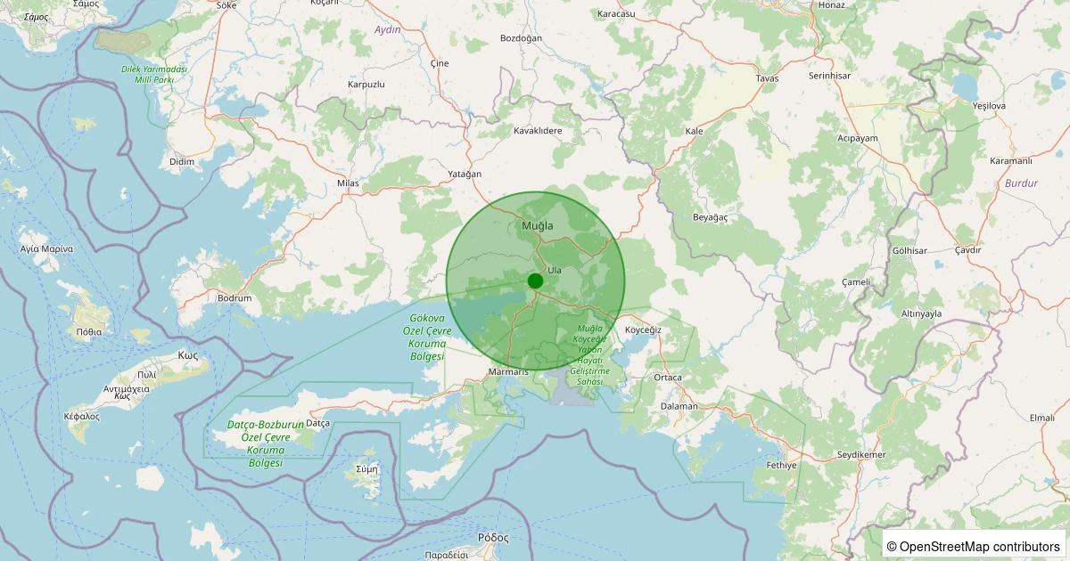 Son 7 gün içinde Ula - Kızılağaç noktasından 100 km yarıçap içerisinde meydana gelen diğer depremler: