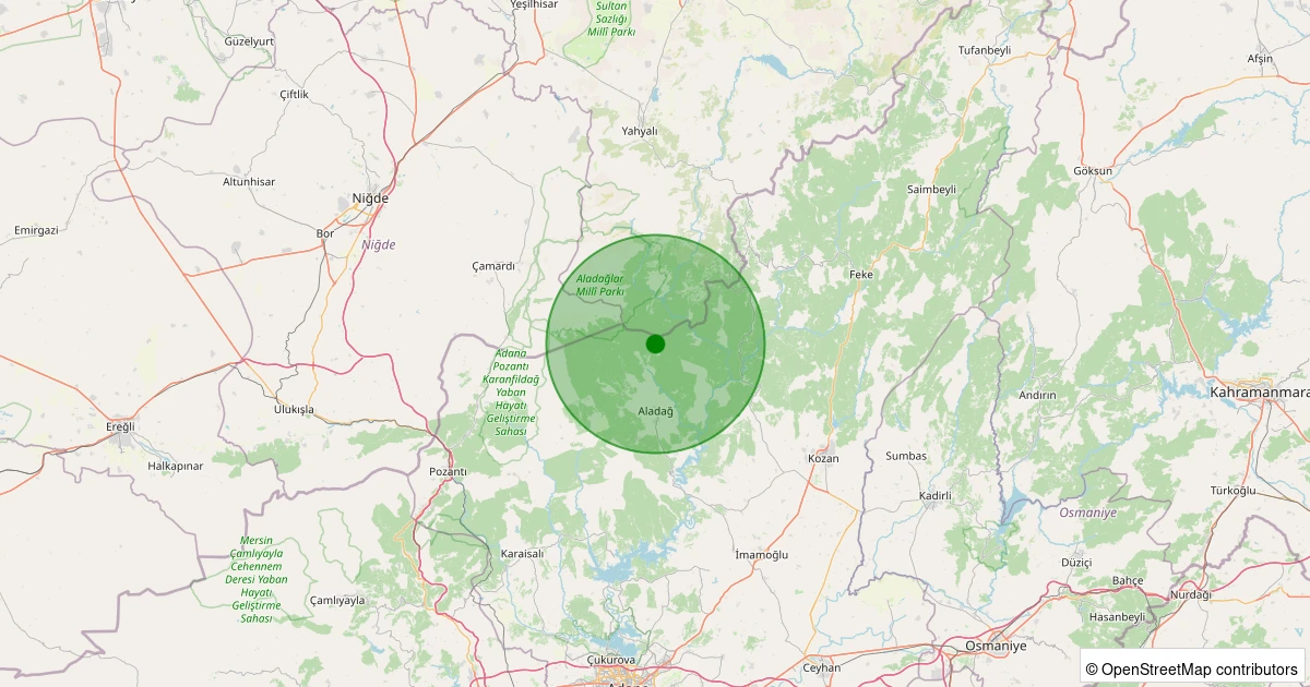 EMSC üzerinden alınan ölçümlere göre Aladağ bölgesinde 02.03.2026 05:21 tarihinde gece saatlerinde 1.1 büyüklüğünde bir deprem meydana geldi.