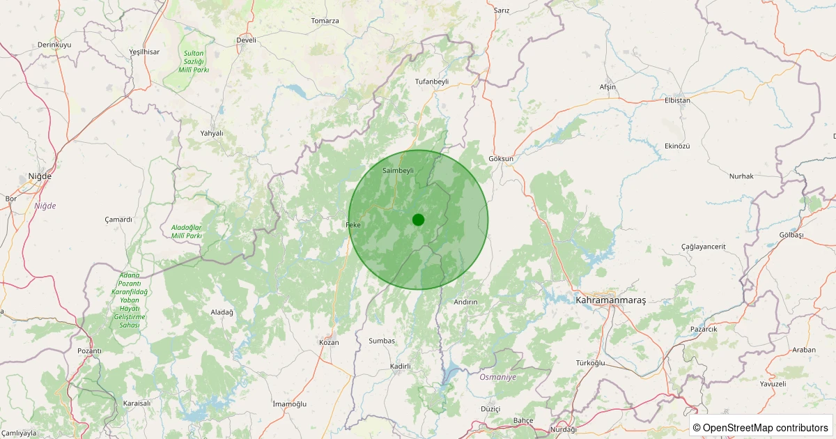 Son 7 gün içinde Saimbeyli - Değirmenciuşağı noktasından 100 km yarıçap içerisinde meydana gelen diğer depremler: