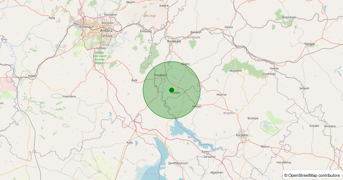 Son 7 gün içinde Çelebi - Hacıyusuflu Köyü noktasından 100 km yarıçap içerisinde meydana gelen diğer depremler: