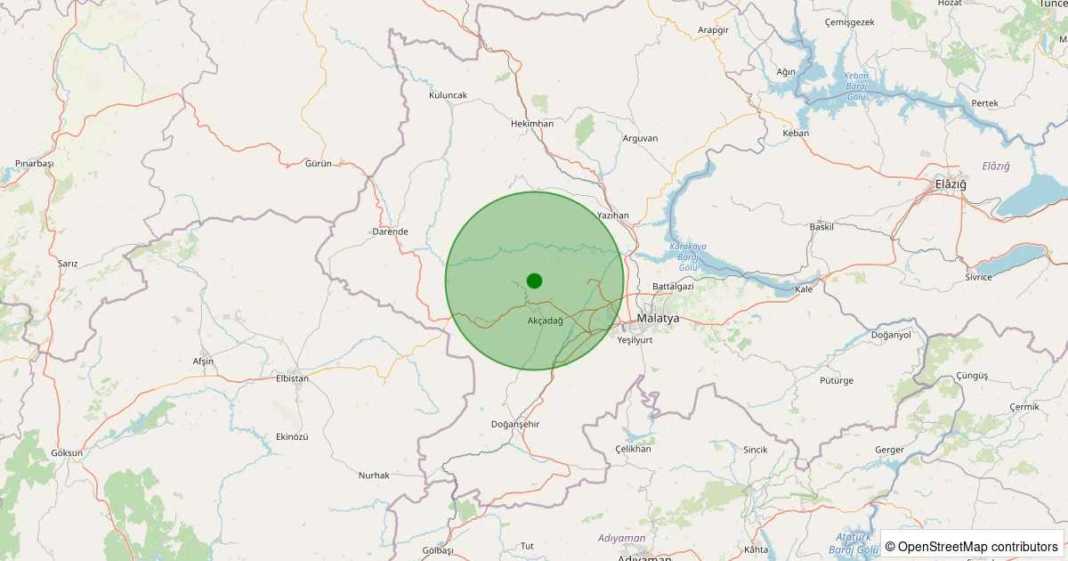 Son 7 gün içinde Akçadağ - Doğanlar noktasından 100 km yarıçap içerisinde meydana gelen diğer depremler: