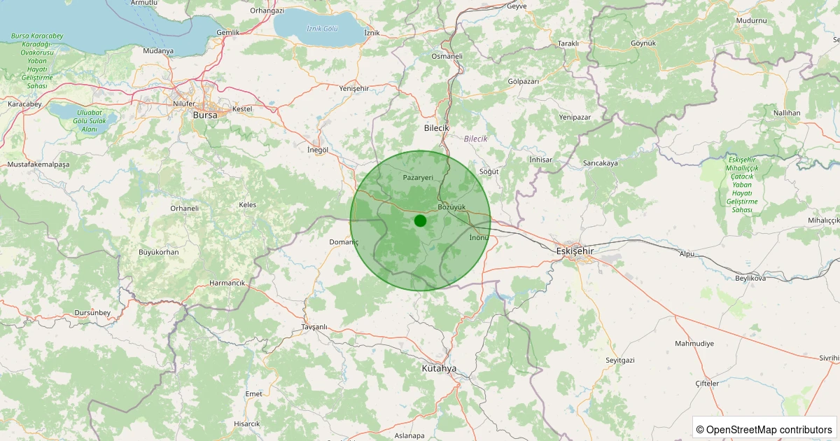 Son 7 gün içinde Bozüyük - Erikli Köyü noktasından 100 km yarıçap içerisinde meydana gelen diğer depremler: