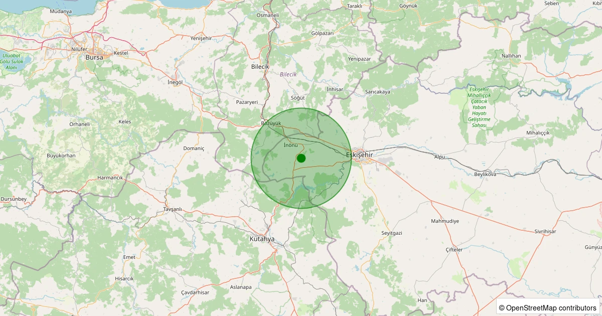 Son 7 gün içinde İnönü - Oklubalı noktasından 100 km yarıçap içerisinde meydana gelen diğer depremler: