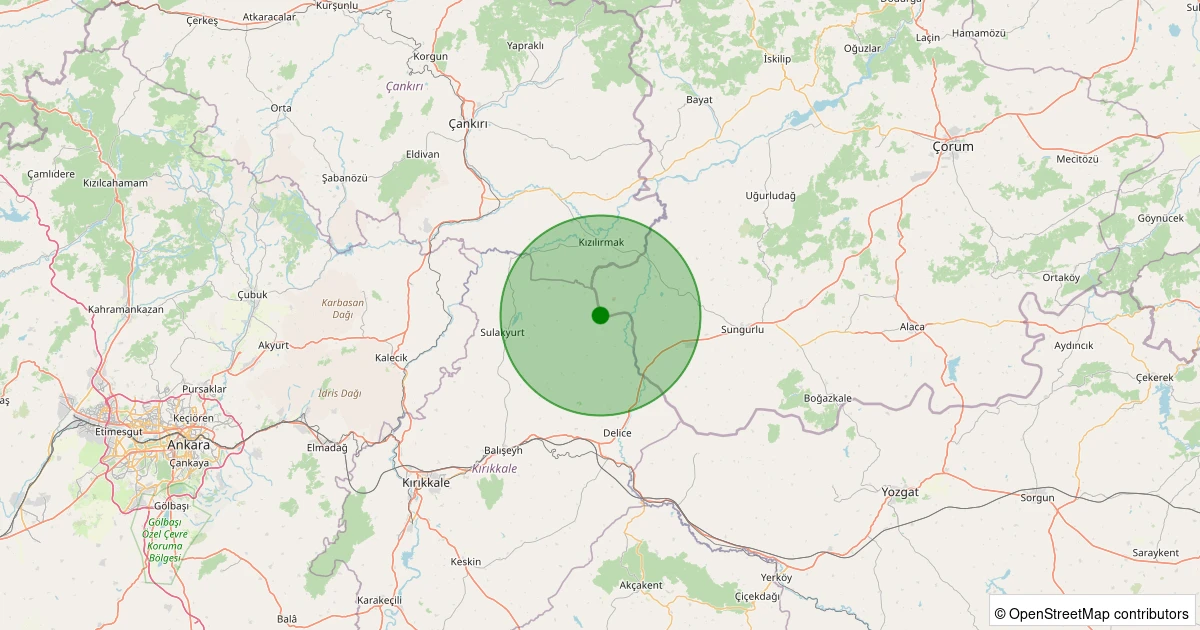 Son 7 gün içinde Sungurlu - İnegazili Köyü noktasından 100 km yarıçap içerisinde meydana gelen diğer depremler: