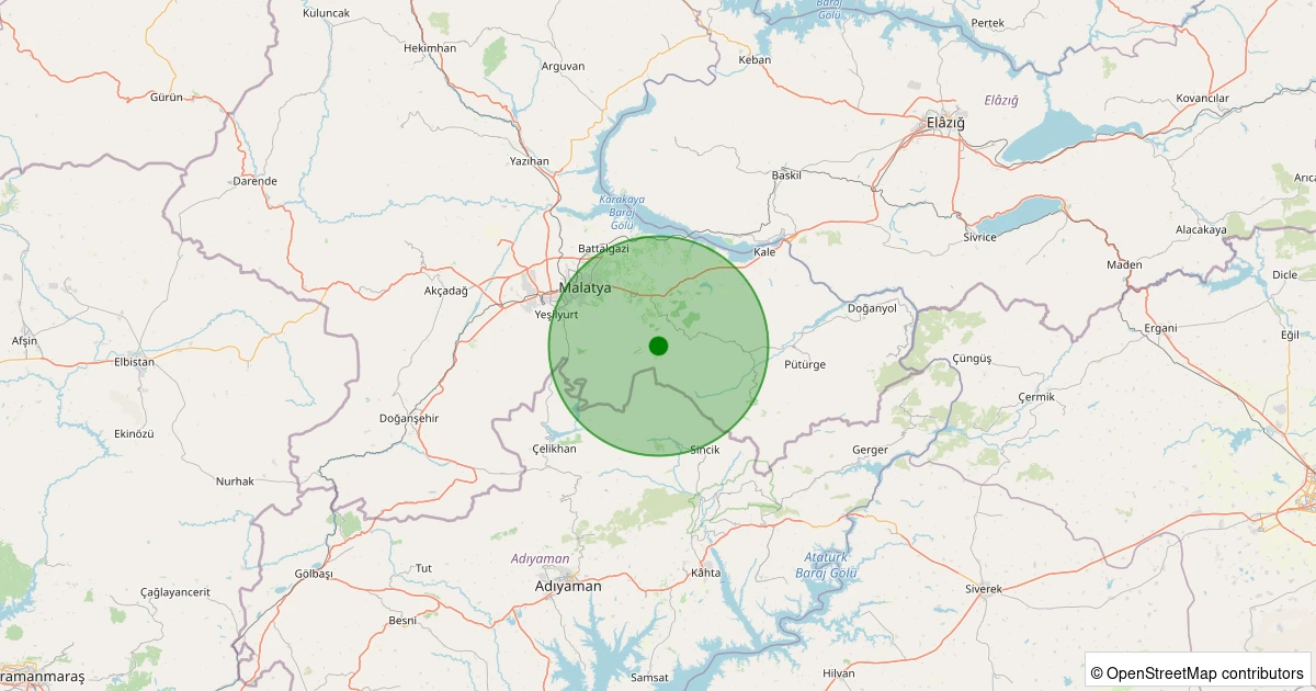 Son 7 gün içinde Battalgazi - Yaygın Köyü noktasından 100 km yarıçap içerisinde meydana gelen diğer depremler: