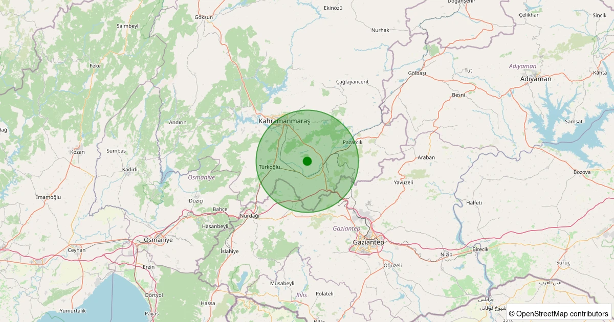 Son 7 gün içinde Dulkadiroğlu - Abbaslar noktasından 100 km yarıçap içerisinde meydana gelen diğer depremler: