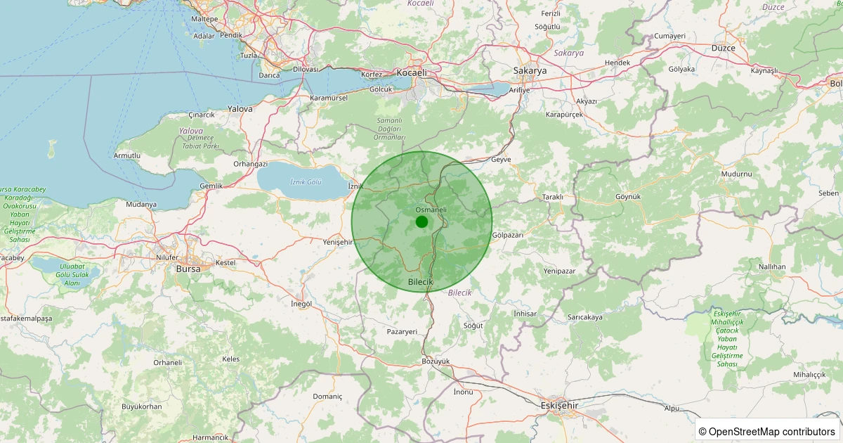 Son 7 gün içinde Osmaneli - Balçıkhisar Köyü noktasından 100 km yarıçap içerisinde meydana gelen diğer depremler: