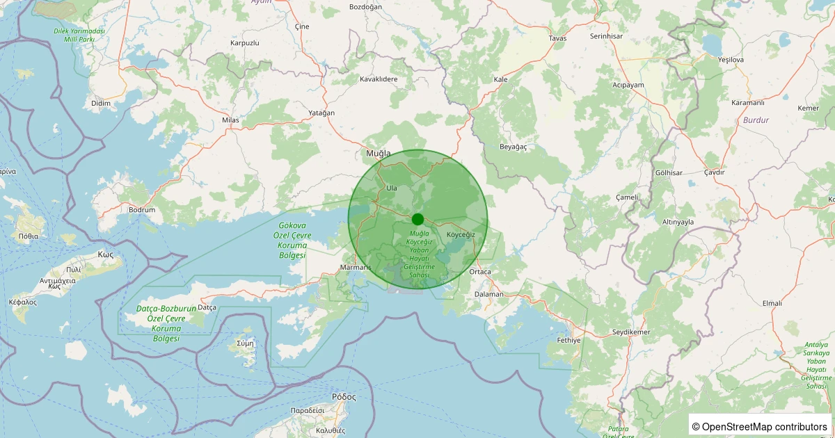 Son 7 gün içinde Ula - Sarayyanı noktasından 100 km yarıçap içerisinde meydana gelen diğer depremler: