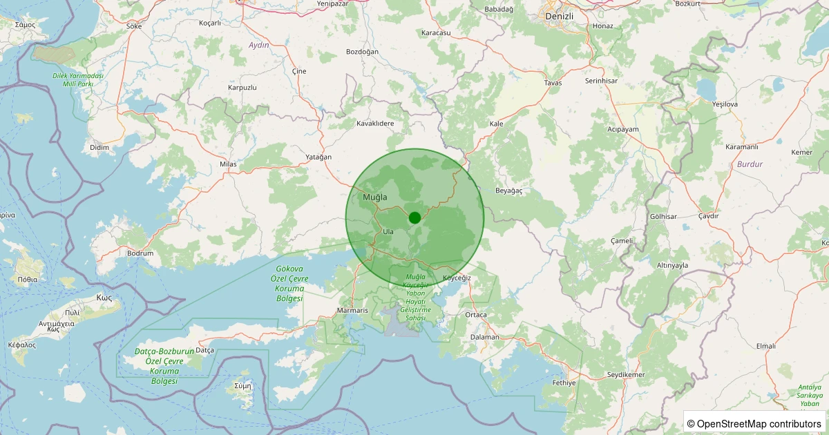 Son 7 gün içinde Menteşe - Yaraş noktasından 100 km yarıçap içerisinde meydana gelen diğer depremler: