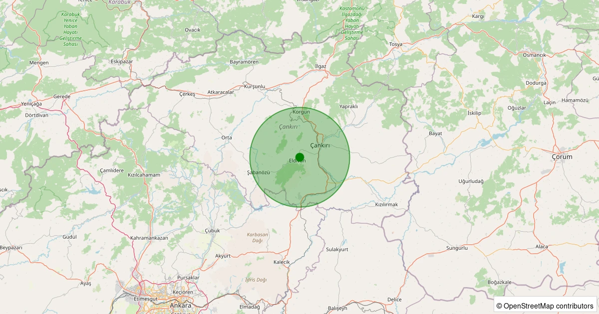 Son 7 gün içinde Eldivan - Dere noktasından 100 km yarıçap içerisinde meydana gelen diğer depremler: