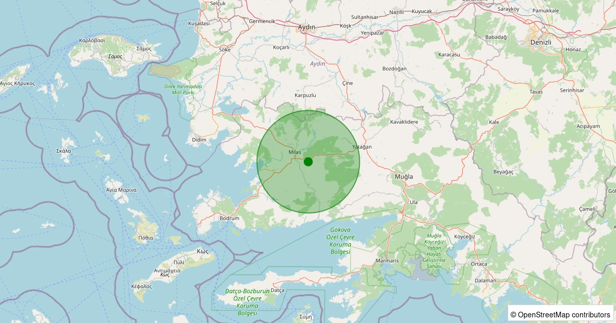 Son 7 gün içinde Milas - Tuzabat noktasından 100 km yarıçap içerisinde meydana gelen diğer depremler: